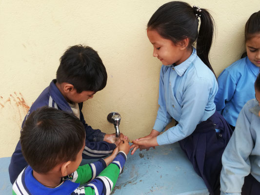 An der Schule in Nepal werden 63 Schüler von fünf Lehrern unterrichtet. Das Hauptproblem wie in den meisten Schulen der armen Dörfer sind Hygiene und Trinkwasser.