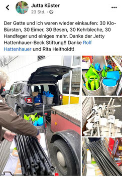 So haben wir Jutta Küster, die seit Jahren in der Flüchtlingshilfe in Bielefeld leitend tätig ist, beim Kauf von Ausstattung für die 30 Briten Häuser als Flüchtlings-Unterkünfte unterstützt.