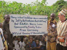 Durch die gute Zusammenarbeit mit Annika Hillers und den zweiten Besuch von Till Prenzel konnten wir in Sierra Leone weitere wichtige Bildungsprojekte realisieren. In Jojoima haben wir im Dezember die Familie Teuber Schule eröffnet und als vierte kleine Dorfschule hat der Neubau der Max Ullmann Schule in Jenneh begonnen. Um die Entwicklung an den von uns gebauten Schulen zu verbessern, haben wir Geld für zusätzliche Lehrer, die Ausbildung dieser und bessere Lernmittel zur Verfügung gestellt.