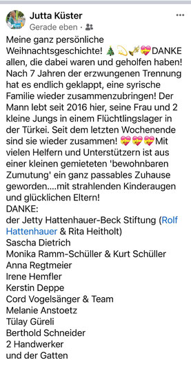 Über Jutta Küster, die sich in Bielefeld vor allem in der Flüchtlingshilfe ehrenamtlich engagiert, konnten wir einer Familie helfen, sich ein neues zu Hause in Bielefeld einzurichten.